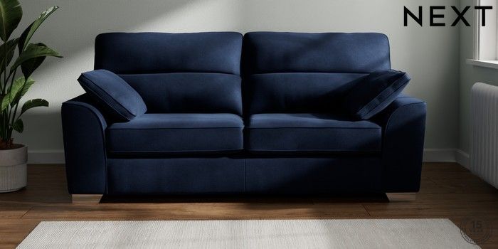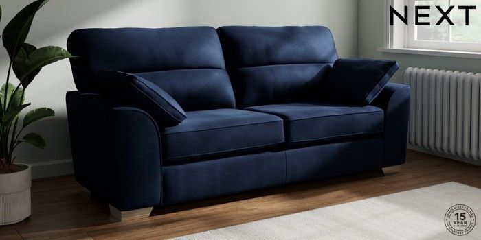7.3.1 Buy Stamford Highback 3 Seater Sofa Luxe Chenille Navy Blue Large Square Angle - Chrome Metal from the Seasons online shop Click here to use our website with more accessibility support, for example screen readers