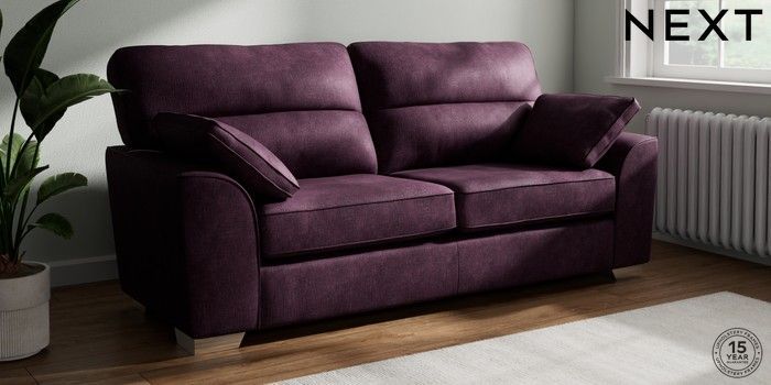 7.3.1 Buy Stamford Highback 3 Seater Sofa Plush Chenille Dark Plum Purple Large Square Angle - Chrome Metal from the Seasons online shop Click here to use our website with more accessibility support, for example screen readers