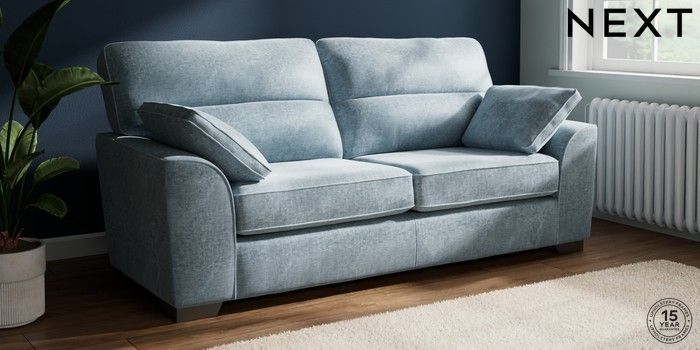 7.3.1 Buy Stamford Highback 3 Seater Sofa Plush Chenille Light Blue Large Square Angle - Gunmetal from the Seasons online shop Click here to use our website with more accessibility support, for example screen readers