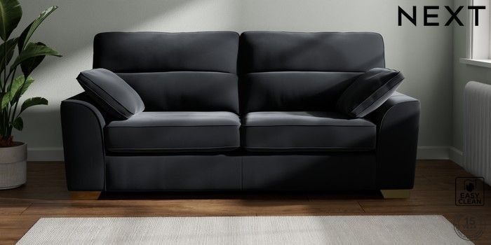 7.3.1 Buy Stamford Highback 3 Seater Sofa Plush Velvet Easy Clean Charcoal Grey Large Square Angle - Brushed Brass from the Seasons online shop Click here to use our website with more accessibility support, for example screen readers