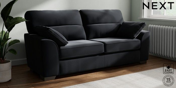 7.3.1 Buy Stamford Highback 3 Seater Sofa Plush Velvet Easy Clean Charcoal Grey Large Square Angle - Gunmetal from the Seasons online shop Click here to use our website with more accessibility support, for example screen readers