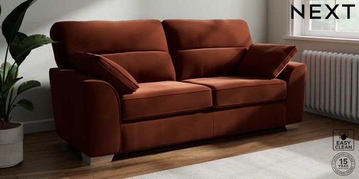 7.3.1 Buy Stamford Highback 3 Seater Sofa Plush Velvet Easy Clean Ginger Orange Large Square Angle - Chrome Metal from the Seasons online shop Click here to use our website with more accessibility support, for example screen readers