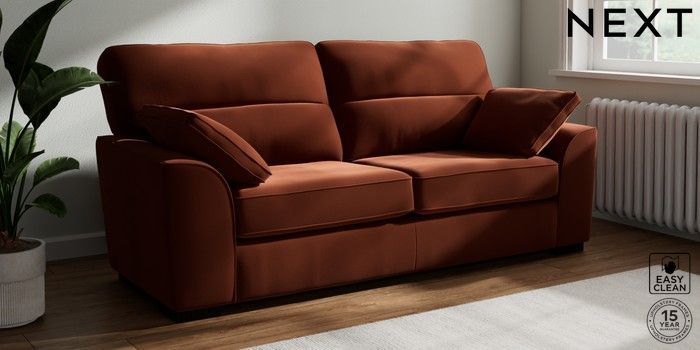 7.3.1 Buy Stamford Highback 3 Seater Sofa Plush Velvet Easy Clean Ginger Orange Large Square Angle - Dark from the Seasons online shop Click here to use our website with more accessibility support, for example screen readers