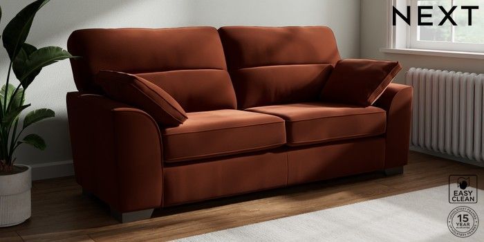 7.3.1 Buy Stamford Highback 3 Seater Sofa Plush Velvet Easy Clean Ginger Orange Large Square Angle - Gunmetal from the Seasons online shop Click here to use our website with more accessibility support, for example screen readers