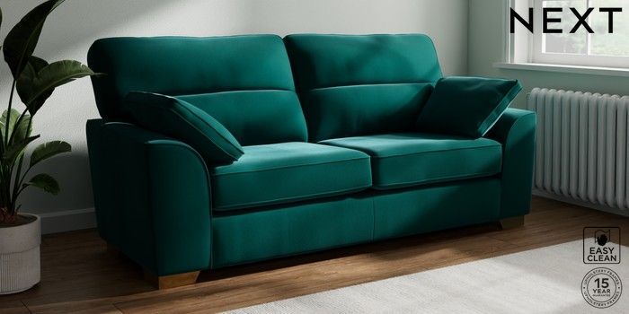 7.3.1 Buy Stamford Highback 3 Seater Sofa Plush Velvet Easy Clean Juniper Green Large Square Angle - Brushed Brass from the Seasons online shop Click here to use our website with more accessibility support, for example screen readers