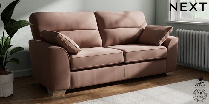 7.3.1 Buy Stamford Highback 3 Seater Sofa Plush Velvet Easy Clean Mid Natural Large Square Angle - Chrome Metal from the Seasons online shop Click here to use our website with more accessibility support, for example screen readers