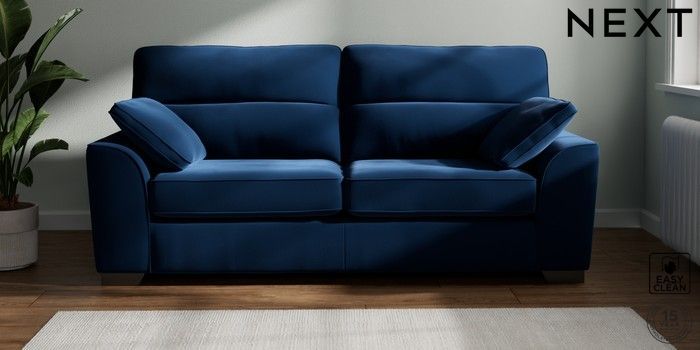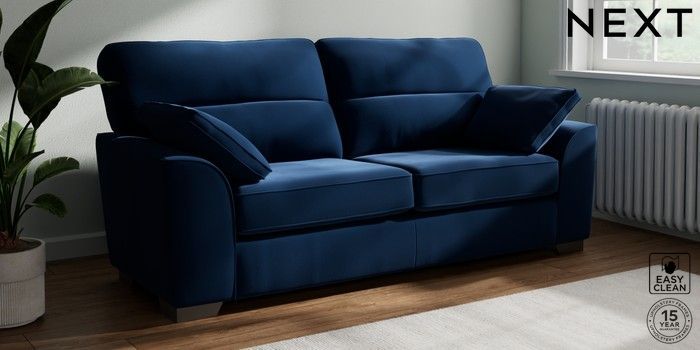 7.3.1 Buy Stamford Highback 3 Seater Sofa Plush Velvet Easy Clean Navy Blue Large Square Angle - Gunmetal from the Seasons online shop Click here to use our website with more accessibility support, for example screen readers