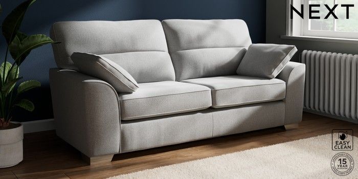 7.3.1 Buy Stamford Highback 3 Seater Sofa Tweedy Blend Easy Clean Light Silver Grey Large Square Angle - Chrome Metal from the Seasons online shop Click here to use our website with more accessibility support, for example screen readers
