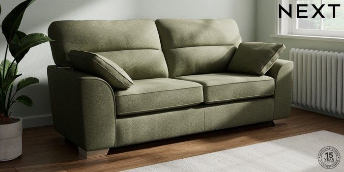 7.3.1 Buy Stamford Highback 3 Seater Sofa Tweedy Chenille Mid Moss Green Large Square Angle - Chrome Metal from the Seasons online shop Click here to use our website with more accessibility support, for example screen readers