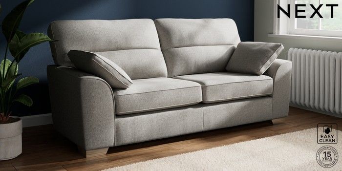 7.3.1 Buy Stamford Highback 3 Seater Sofa Woven Chenille Easy Clean Light Grey Large Square Angle - Chrome Metal from the Seasons online shop Click here to use our website with more accessibility support, for example screen readers