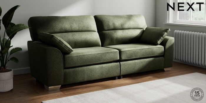 7.3.1 Buy Stamford Highback 4 Seater Sofa Boucle Chenille Dark Moss Green Large Square Angle - Chrome Metal from the Seasons online shop Click here to use our website with more accessibility support, for example screen readers
