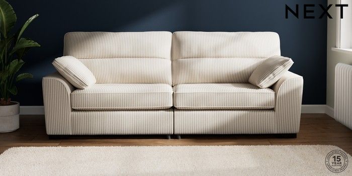 7.3.1 Buy Stamford Highback 4 Seater Sofa Chenille Stripe Natural Large Square Angle - Dark from the Seasons online shop Click here to use our website with more accessibility support, for example screen readers