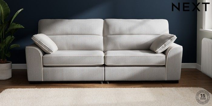 7.3.1 Buy Stamford Highback 4 Seater Sofa Chenille Stripe Slate Blue Large Square Angle - Dark from the Seasons online shop Click here to use our website with more accessibility support, for example screen readers