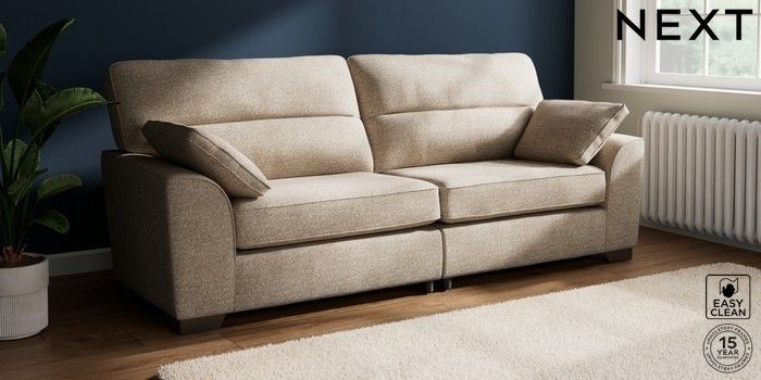 7.3.1 Buy Stamford Highback 4 Seater Sofa Chunky Boucle Easy Clean Mid Natural Large Square Angle - Gunmetal from the Seasons online shop Click here to use our website with more accessibility support, for example screen readers