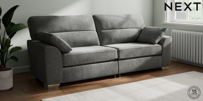 7.3.1 Buy Stamford Highback 4 Seater Sofa Chunky Chenille Dark Grey Large Square Angle - Chrome Metal from the Seasons online shop Click here to use our website with more accessibility support, for example screen readers
