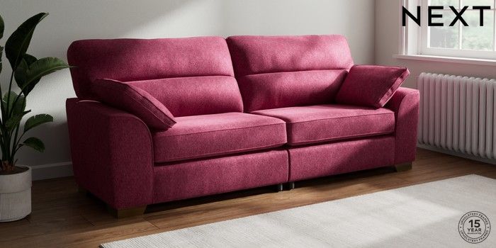 7.2.10 Buy Stamford Highback 4 Seater Sofa Cotswold Chenille Dark Raspberry Pink Large Square Angle - Brushed Brass from the Seasons online shop Click here to use our website with more accessibility support, for example screen readers