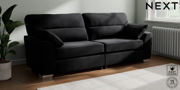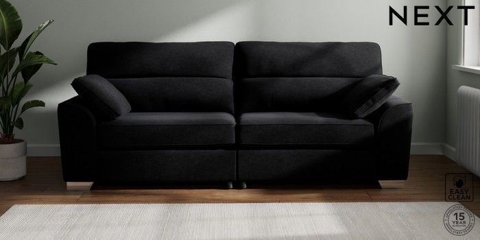 7.3.1 Buy Stamford Highback 4 Seater Sofa Fine Chenille Easy Clean Black Large Square Angle - Chrome Metal from the Seasons online shop Click here to use our website with more accessibility support, for example screen readers