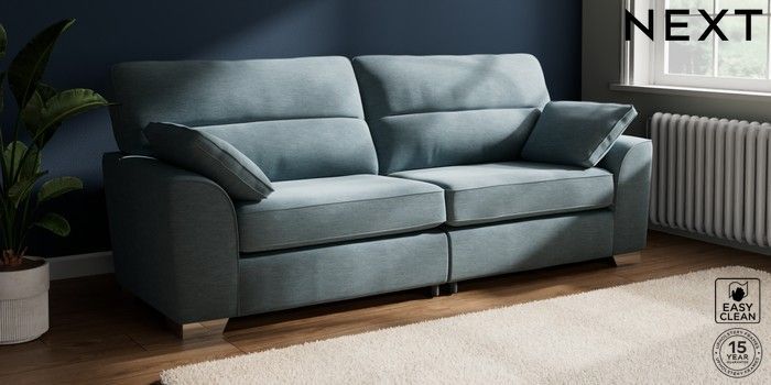 7.3.1 Buy Stamford Highback 4 Seater Sofa Fine Chenille Easy Clean Mid Blue Large Square Angle - Chrome Metal from the Seasons online shop Click here to use our website with more accessibility support, for example screen readers