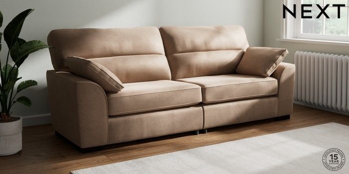 7.2.10 Buy Stamford Highback 4 Seater Sofa Luxe Chenille Mid Natural Large Square Angle - Dark from the Seasons online shop Click here to use our website with more accessibility support, for example screen readers