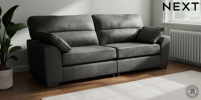 7.3.1 Buy Stamford Highback 4 Seater Sofa Plush Chenille Dark Grey Large Square Angle - Gunmetal from the Seasons online shop Click here to use our website with more accessibility support, for example screen readers