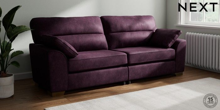 7.3.1 Buy Stamford Highback 4 Seater Sofa Plush Chenille Dark Plum Purple Large Square Angle - Brushed Brass from the Seasons online shop Click here to use our website with more accessibility support, for example screen readers