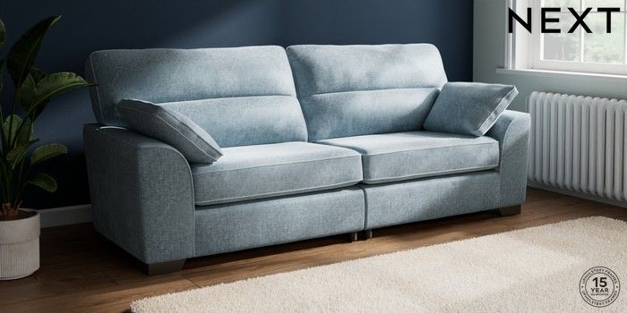 7.3.1 Buy Stamford Highback 4 Seater Sofa Plush Chenille Light Blue Large Square Angle - Gunmetal from the Seasons online shop Click here to use our website with more accessibility support, for example screen readers