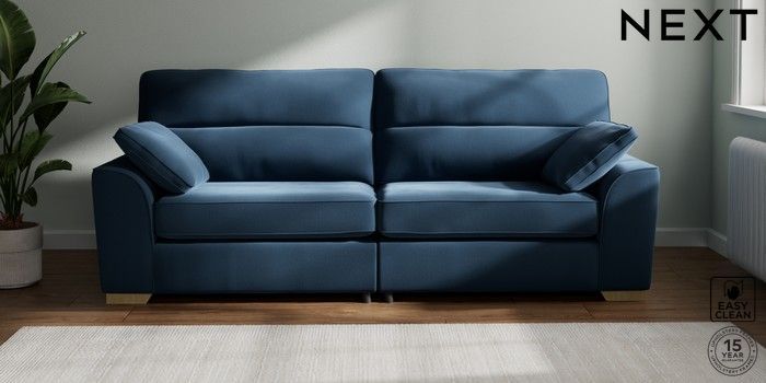 7.3.1 Buy Stamford Highback 4 Seater Sofa Plush Velvet Easy Clean Airforce Blue Large Square Angle - Light from the Seasons online shop Click here to use our website with more accessibility support, for example screen readers