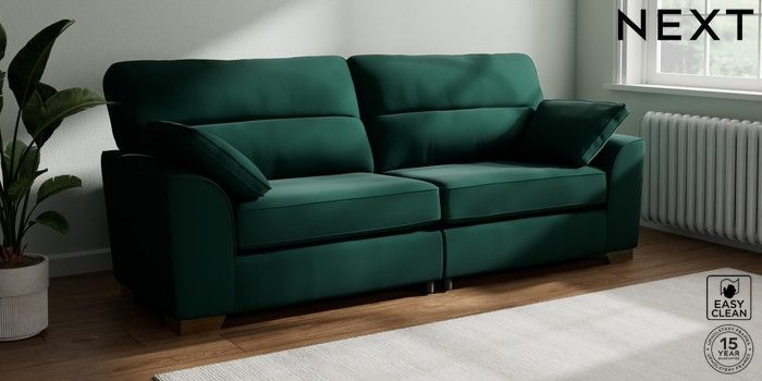 7.3.1 Buy Stamford Highback 4 Seater Sofa Plush Velvet Easy Clean Bottle Green Large Square Angle - Brushed Brass from the Seasons online shop Click here to use our website with more accessibility support, for example screen readers