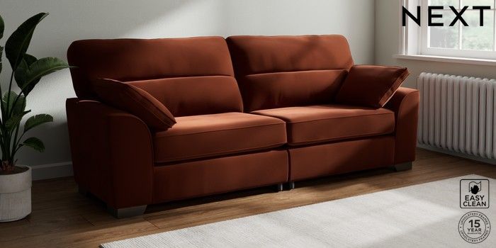 7.3.1 Buy Stamford Highback 4 Seater Sofa Plush Velvet Easy Clean Ginger Orange Large Square Angle - Gunmetal from the Seasons online shop Click here to use our website with more accessibility support, for example screen readers