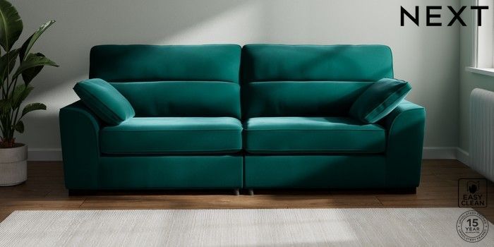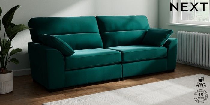 7.3.1 Buy Stamford Highback 4 Seater Sofa Plush Velvet Easy Clean Juniper Green Large Square Angle - Dark from the Seasons online shop Click here to use our website with more accessibility support, for example screen readers