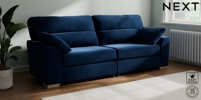 7.3.1 Buy Stamford Highback 4 Seater Sofa Plush Velvet Easy Clean Navy Blue Large Square Angle - Light from the Seasons online shop Click here to use our website with more accessibility support, for example screen readers