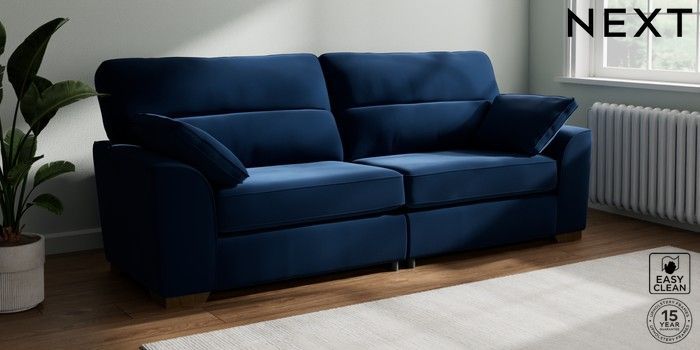 7.3.1 Buy Stamford Highback 4 Seater Sofa Plush Velvet Easy Clean Navy Blue Large Square Angle - Mid from the Seasons online shop Click here to use our website with more accessibility support, for example screen readers