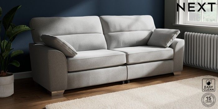 7.3.1 Buy Stamford Highback 4 Seater Sofa Tweedy Blend Easy Clean Light Silver Grey Large Square Angle - Chrome Metal from the Seasons online shop Click here to use our website with more accessibility support, for example screen readers