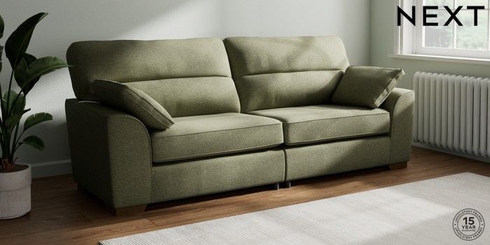 7.3.1 Buy Stamford Highback 4 Seater Sofa Tweedy Chenille Mid Moss Green Large Square Angle - Mid from the Seasons online shop Click here to use our website with more accessibility support, for example screen readers