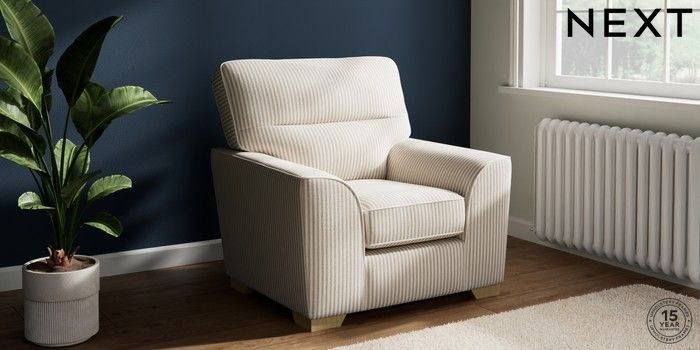 7.3.1 Buy Stamford Highback Armchair Chenille Stripe Natural Square Angle - Light from the Seasons online shop Click here to use our website with more accessibility support, for example screen readers
