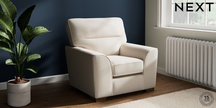 7.3.1 Buy Stamford Highback Armchair Chenille Stripe Natural Square Angle - Mid from the Seasons online shop Click here to use our website with more accessibility support, for example screen readers