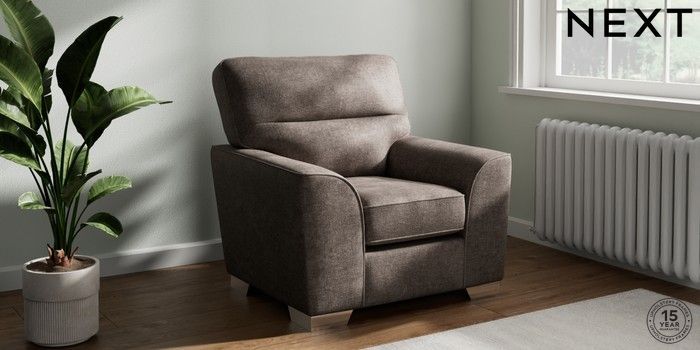 7.3.1 Buy Stamford Highback Armchair Plush Chenille Mink Brown Square Angle - Chrome Metal from the Seasons online shop Click here to use our website with more accessibility support, for example screen readers