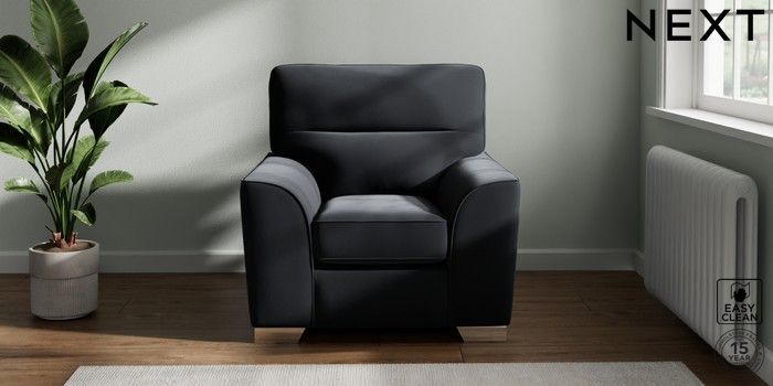 7.3.1 Buy Stamford Highback Armchair Plush Velvet Easy Clean Charcoal Grey Square Angle - Chrome Metal from the Seasons online shop Click here to use our website with more accessibility support, for example screen readers