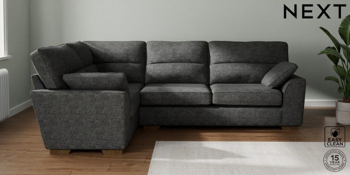 7.2.10 Buy Stamford Highback Large Corner Sofa - Left Hand Boucle Weave Easy Clean Charcoal Grey Large Square Angle - Mid from the Seasons online shop Click here to use our website with more accessibility support, for example screen readers
