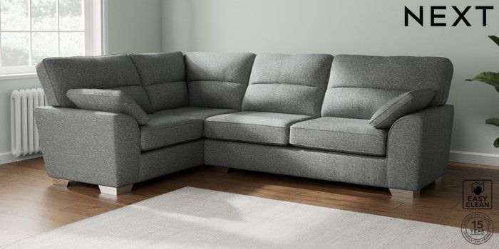 7.3.1 Buy Stamford Highback Large Corner Sofa - Left Hand Chunky Boucle Easy Clean Mid Grey Large Square Angle - Chrome Metal from the Seasons online shop Click here to use our website with more accessibility support, for example screen readers