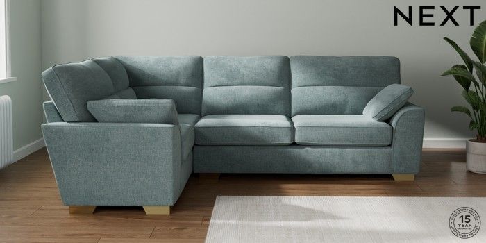 7.2.10 Buy Stamford Highback Large Corner Sofa - Left Hand Chunky Chenille Light Teal Green Large Square Angle - Brushed Brass from the Seasons online shop Click here to use our website with more accessibility support, for example screen readers
