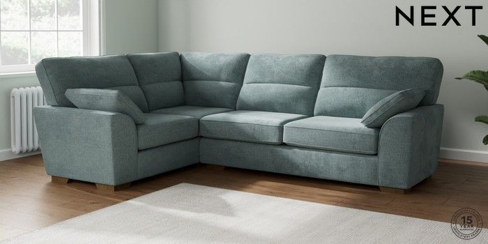 7.2.10 Buy Stamford Highback Large Corner Sofa - Left Hand Chunky Chenille Light Teal Green Large Square Angle - Mid from the Seasons online shop Click here to use our website with more accessibility support, for example screen readers
