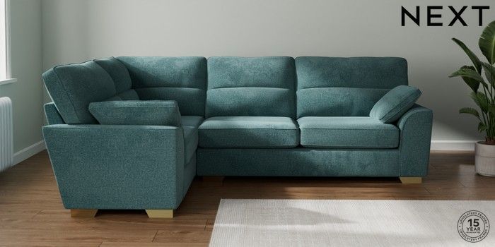 7.2.10 Buy Stamford Highback Large Corner Sofa - Left Hand Chunky Chenille Mid Teal Green Large Square Angle - Brushed Brass from the Seasons online shop Click here to use our website with more accessibility support, for example screen readers