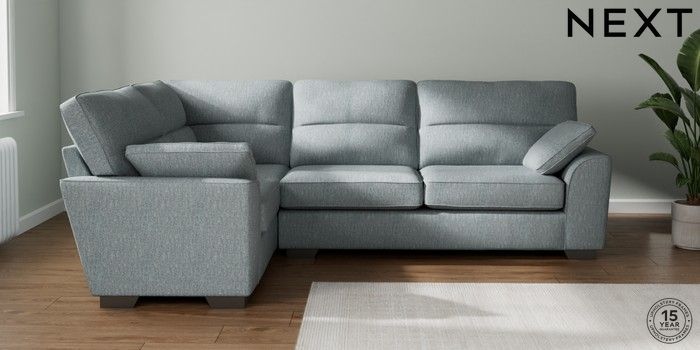 7.3.1 Buy Stamford Highback Large Corner Sofa - Left Hand Chunky Weave Mid Blue Large Square Angle - Gunmetal from the Seasons online shop Click here to use our website with more accessibility support, for example screen readers