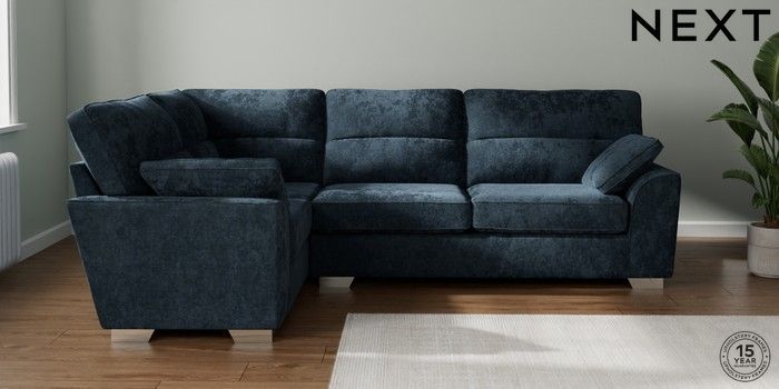 7.3.1 Buy Stamford Highback Large Corner Sofa - Left Hand Distressed Velour Midnight Blue Large Square Angle - Chrome Metal from the Seasons online shop Click here to use our website with more accessibility support, for example screen readers