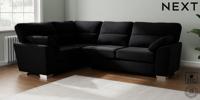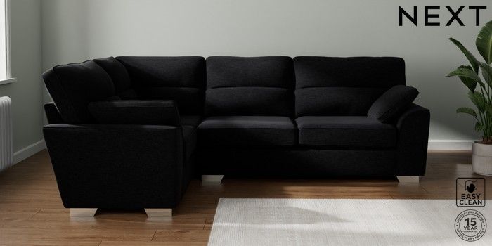7.2.10 Buy Stamford Highback Large Corner Sofa - Left Hand Fine Chenille Easy Clean Black Large Square Angle - Chrome Metal from the Seasons online shop Click here to use our website with more accessibility support, for example screen readers