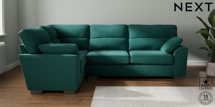 7.3.1 Buy Stamford Highback Large Corner Sofa - Left Hand Fine Chenille Easy Clean Dark Juniper Green Large Square Angle - Gunmetal from the Seasons online shop Click here to use our website with more accessibility support, for example screen readers