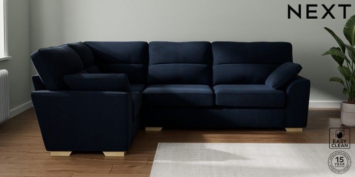 7.2.10 Buy Stamford Highback Large Corner Sofa - Left Hand Fine Chenille Easy Clean Dark Navy Blue Large Square Angle - Light from the Seasons online shop Click here to use our website with more accessibility support, for example screen readers