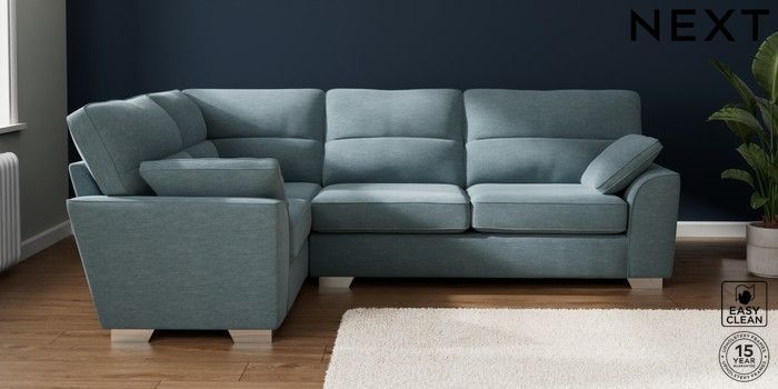 7.3.1 Buy Stamford Highback Large Corner Sofa - Left Hand Fine Chenille Easy Clean Mid Blue Large Square Angle - Chrome Metal from the Seasons online shop Click here to use our website with more accessibility support, for example screen readers
