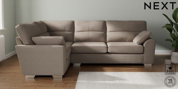 7.3.1 Buy Stamford Highback Large Corner Sofa - Left Hand Fine Chenille Easy Clean Mid Taupe Brown Large Square Angle - Chrome Metal from the Seasons online shop Click here to use our website with more accessibility support, for example screen readers